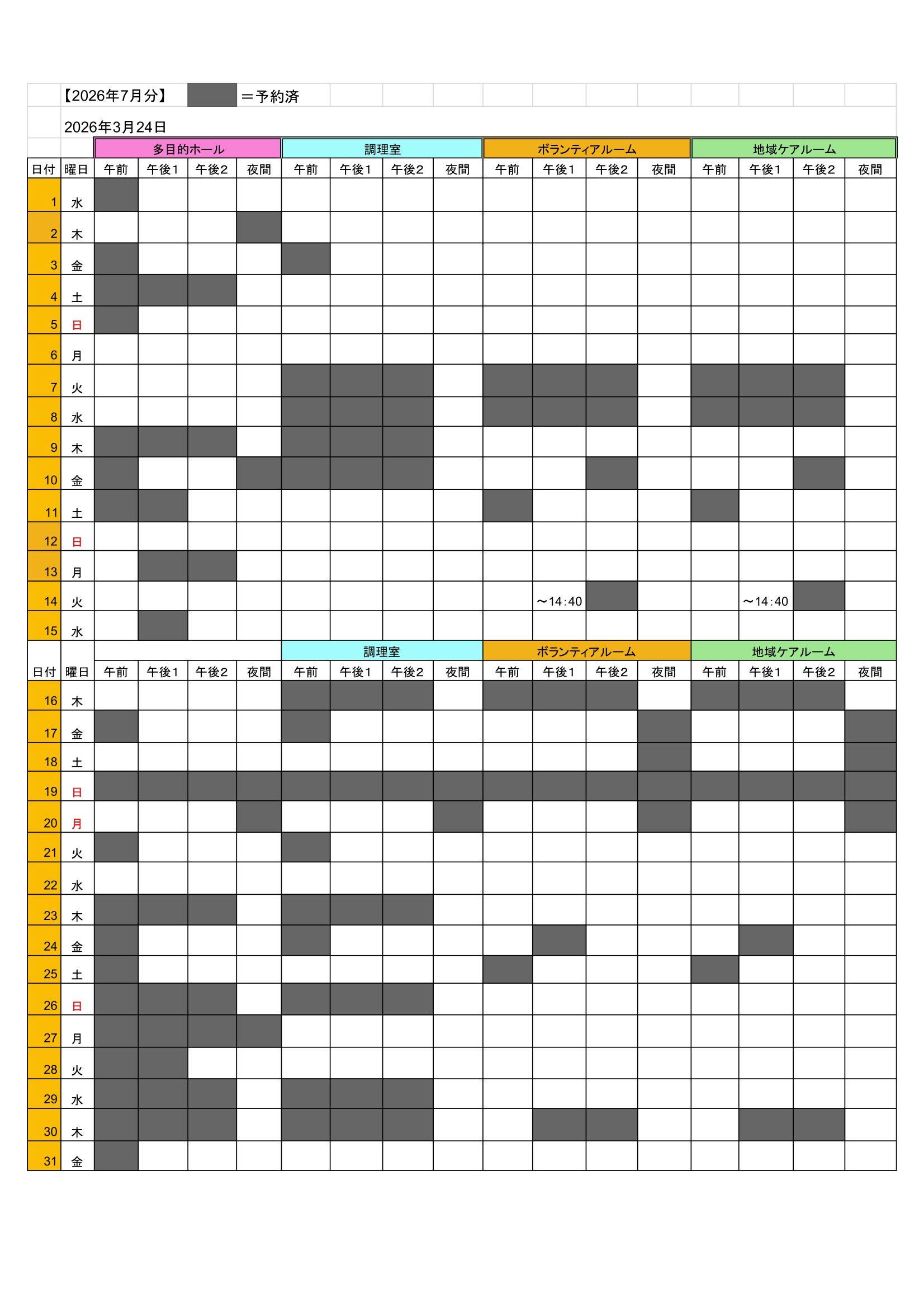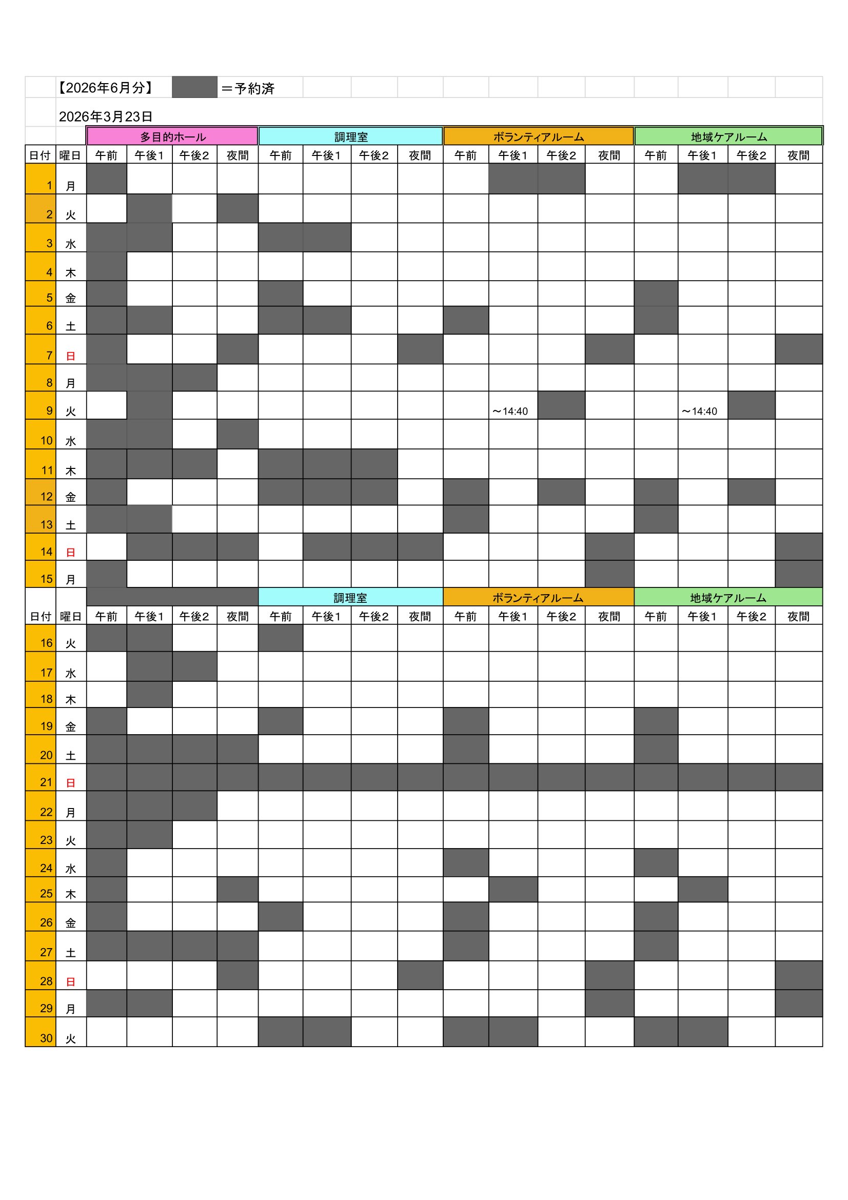 2026年6月・7月の貸館予約状況です。