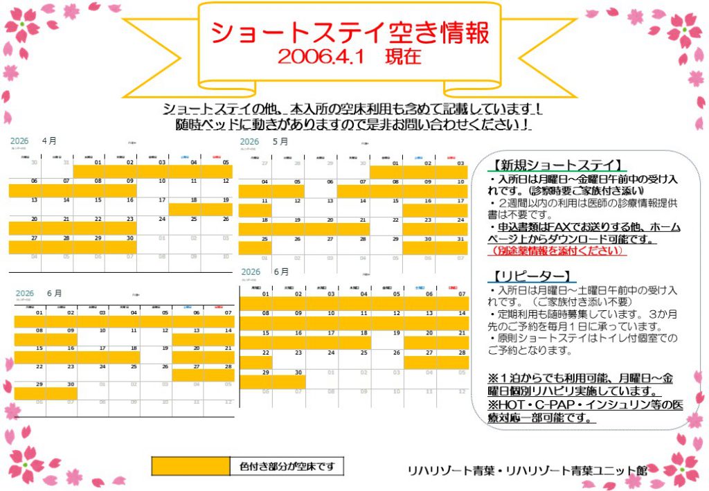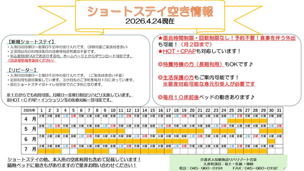 ショートステイ情報提供書