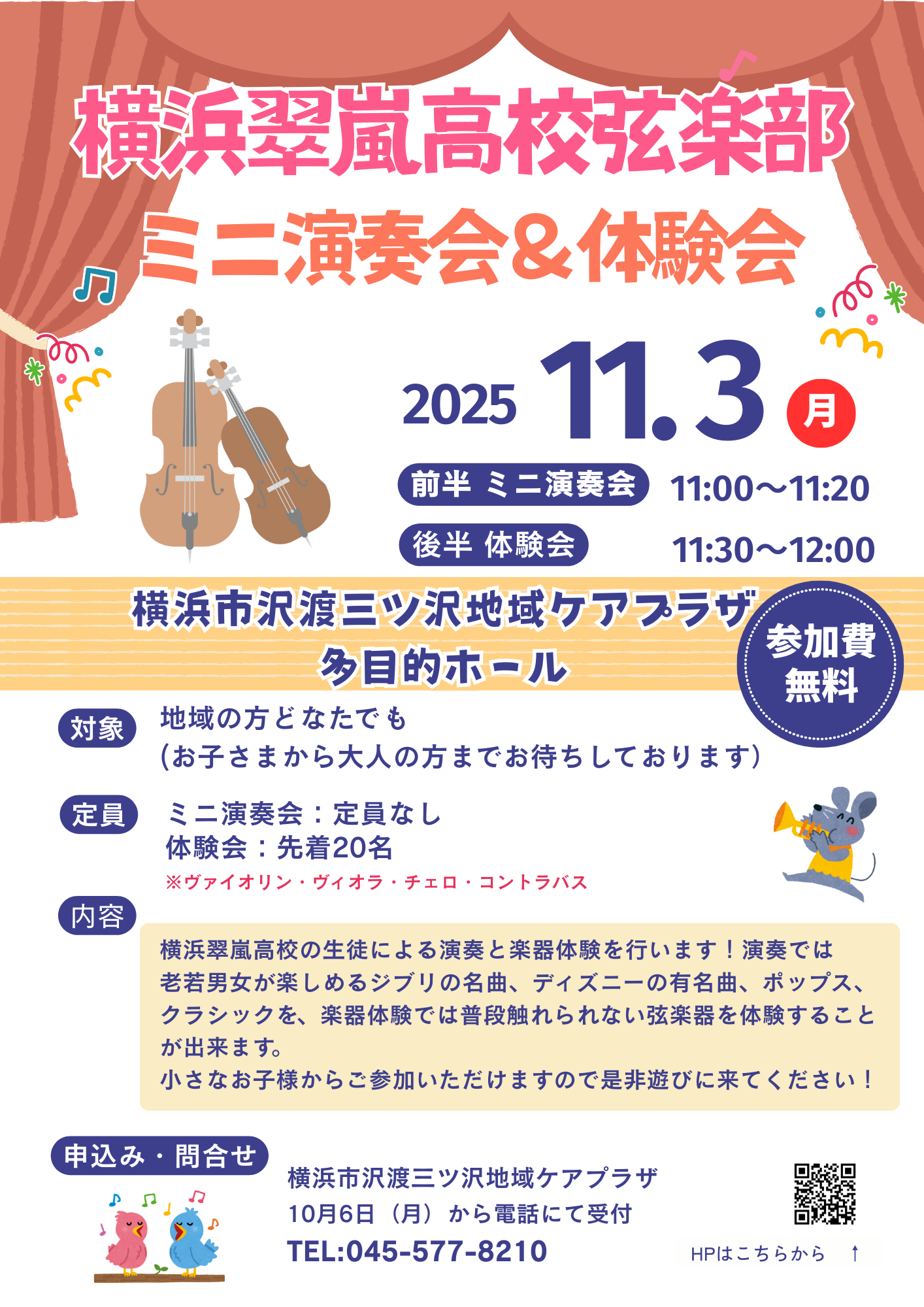 11月『翠嵐高校弦楽部ミニ演奏会&体験会』11/3(月) NEW!