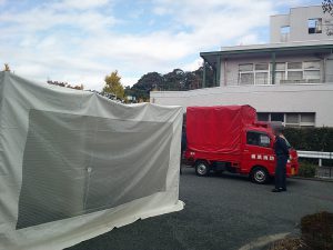 駐車場では、横浜市金沢消防署と横浜市金沢消防団のご協力で消防車両の展示・こども消防服撮影・煙ハウスの体験をすることができました。またモルックやスリッパ卓球のブースも設けられ、体験すると「セレモホール富岡」のポップコーンが無料でもらえるということで、とても盛り上がっていました☆