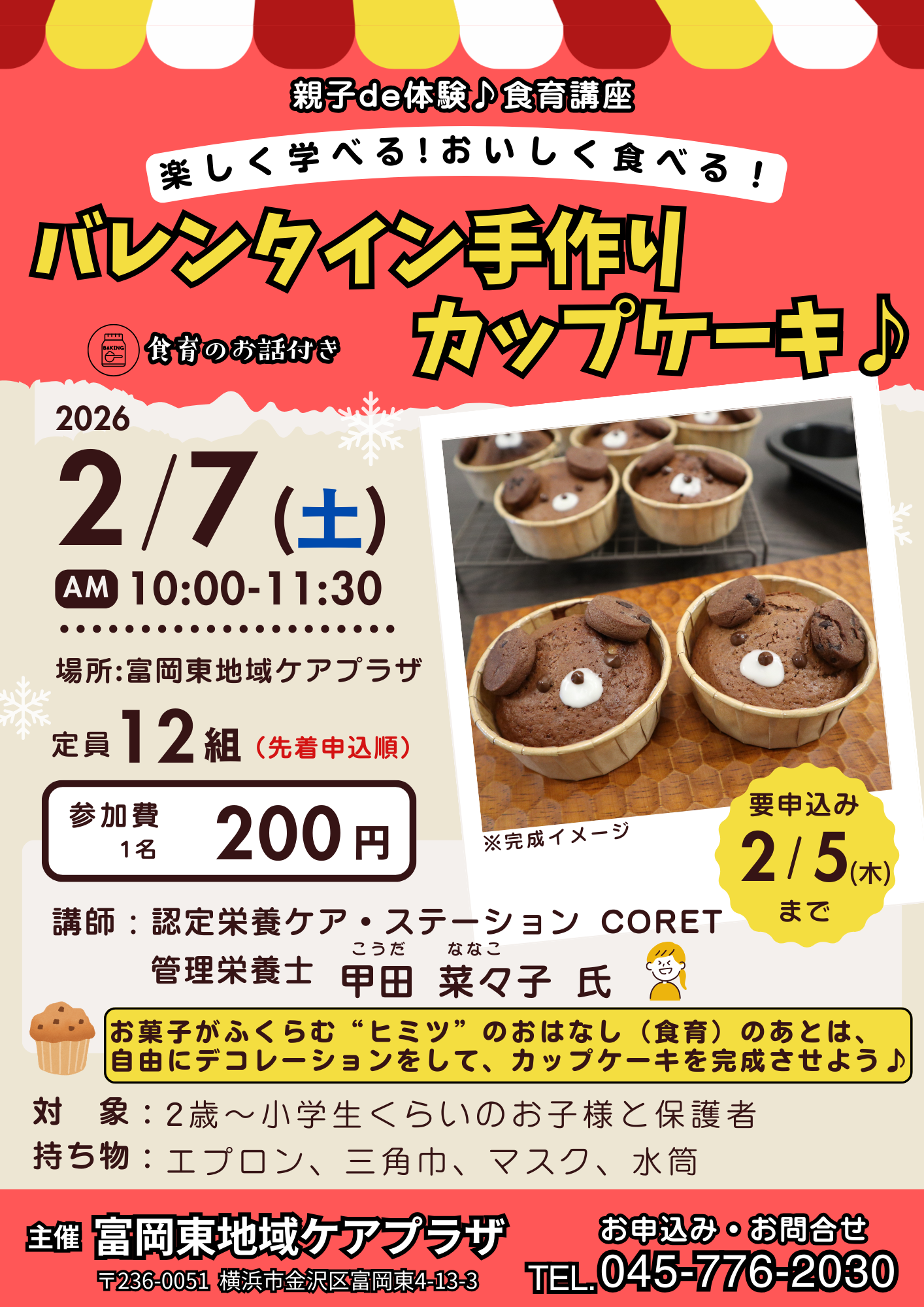 - ◎バレンタイン手作りカップケーキ♪【2月7日(土) 10:00~11:30】