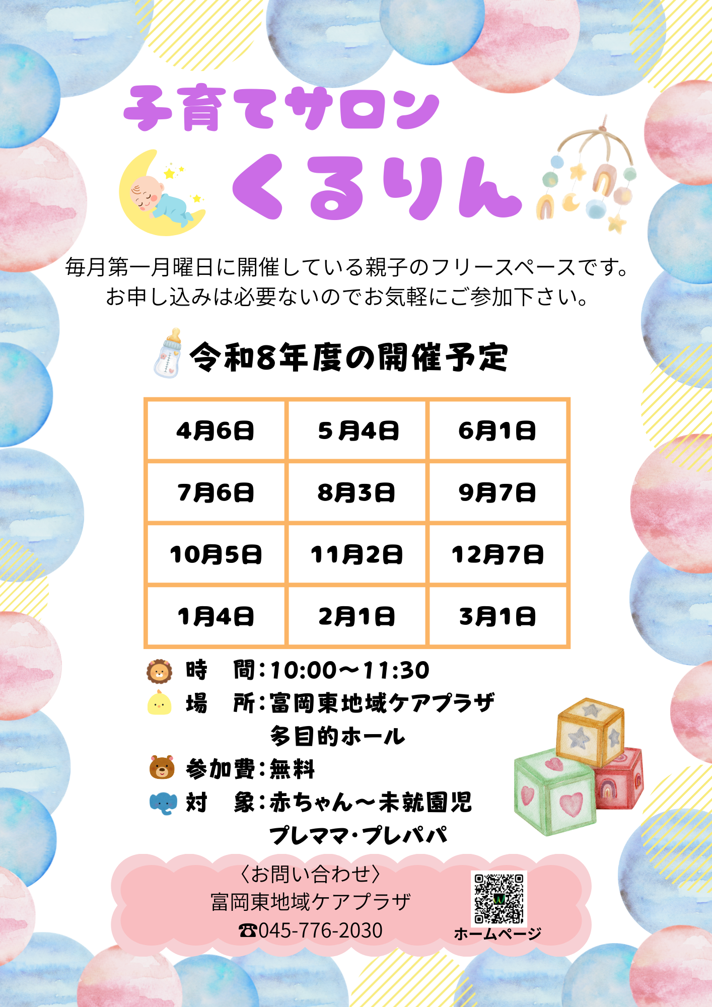 - ◎子育てサロン「くるりん」【毎月第1月曜日 10:00~11:30】